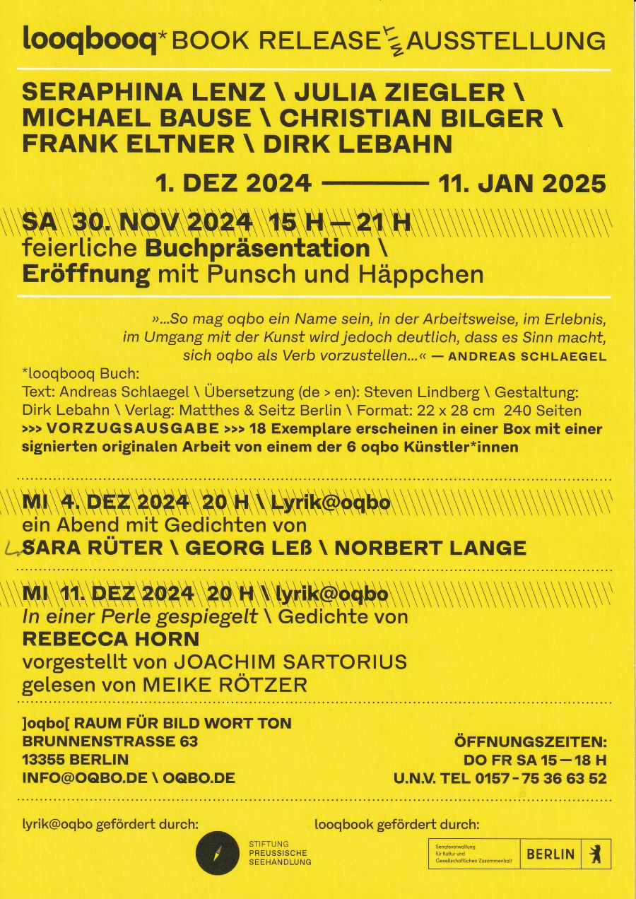 looqbooq, 1.12. 2024 bis 11. 1. 2025, oqbo, Brunnenstr. 63, Berlin