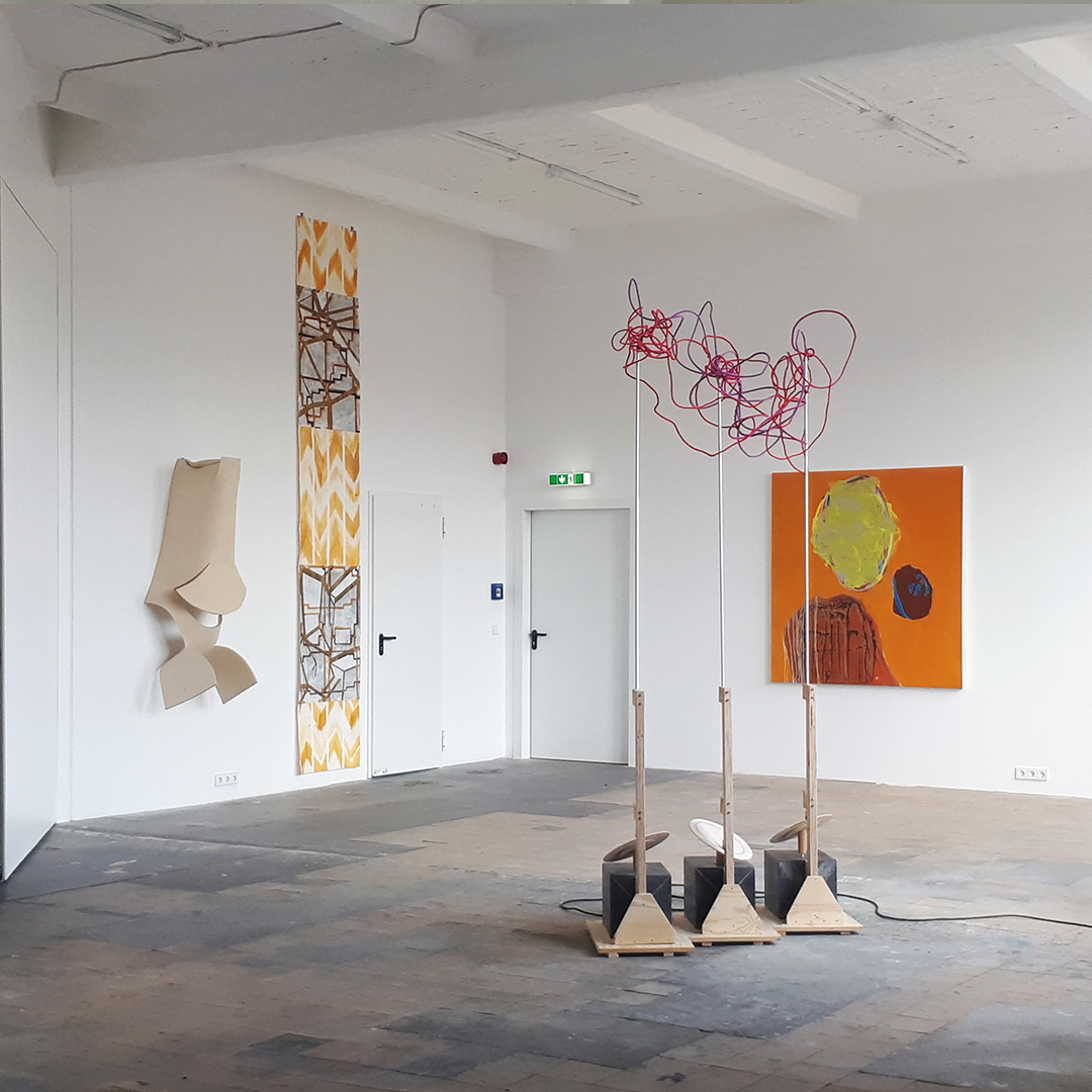 Muster der Moderne, Bildbahn, mit „Wolke“ von Christian Bilger, „o.T.“von Michael Bause, „TRANSTAUTOLOGIER“von Dirk Lebahn