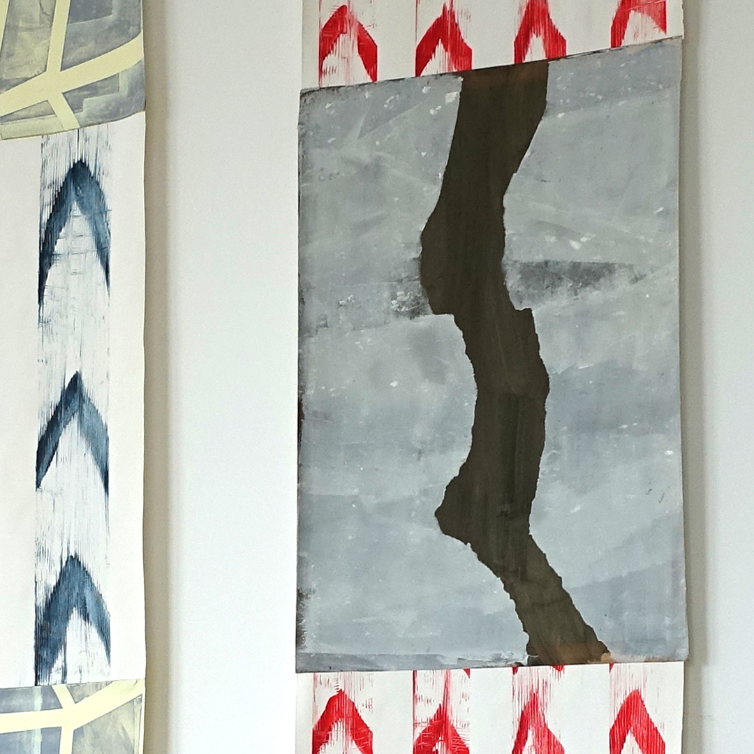 Drei Bildbahnen, je 400 x 70cm, Acryl/ Papier