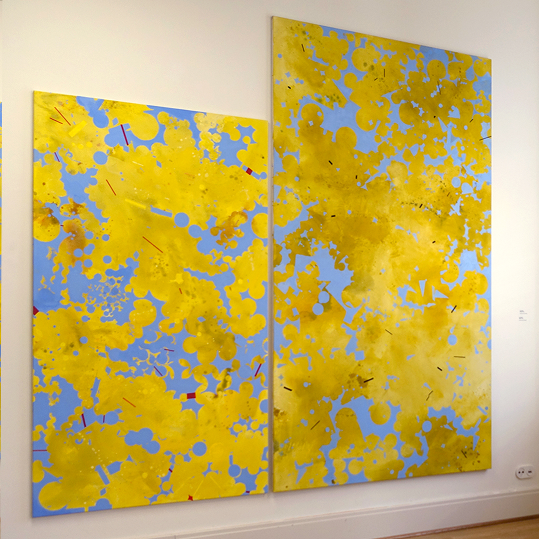 2020/2015 Acryl/Nessel, 120 x 210 + 150 x 270, Ausstellungsansicht Point of View(s), Biesdorf 2023