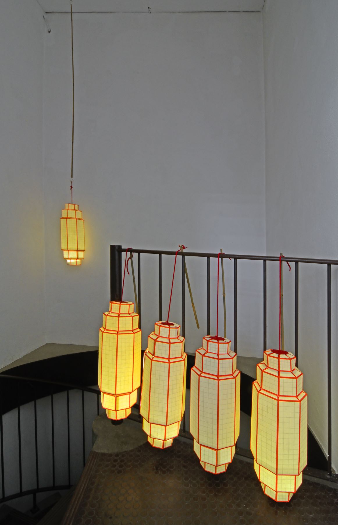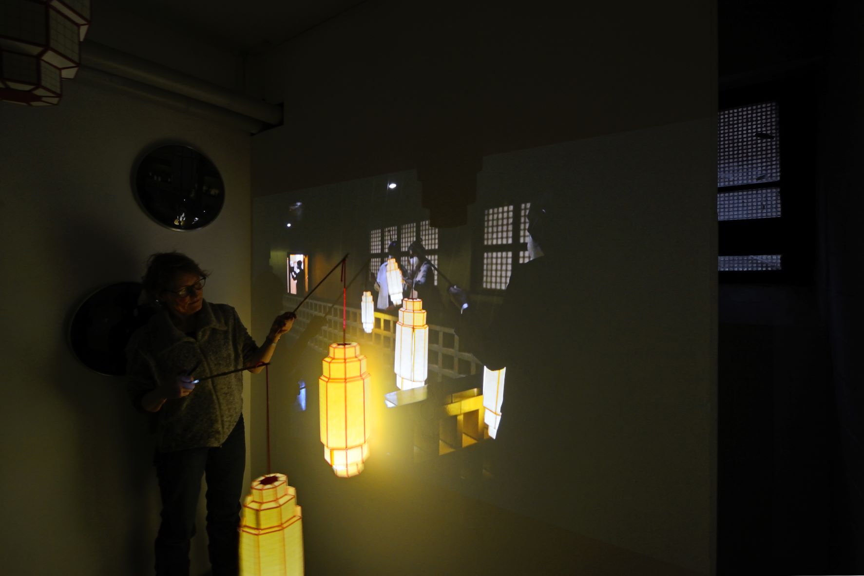 Dokumentarische, interaktive Installation mit projiziertem Film, Fotografien, Papierlaternen und vielfachen Spiegelungen.