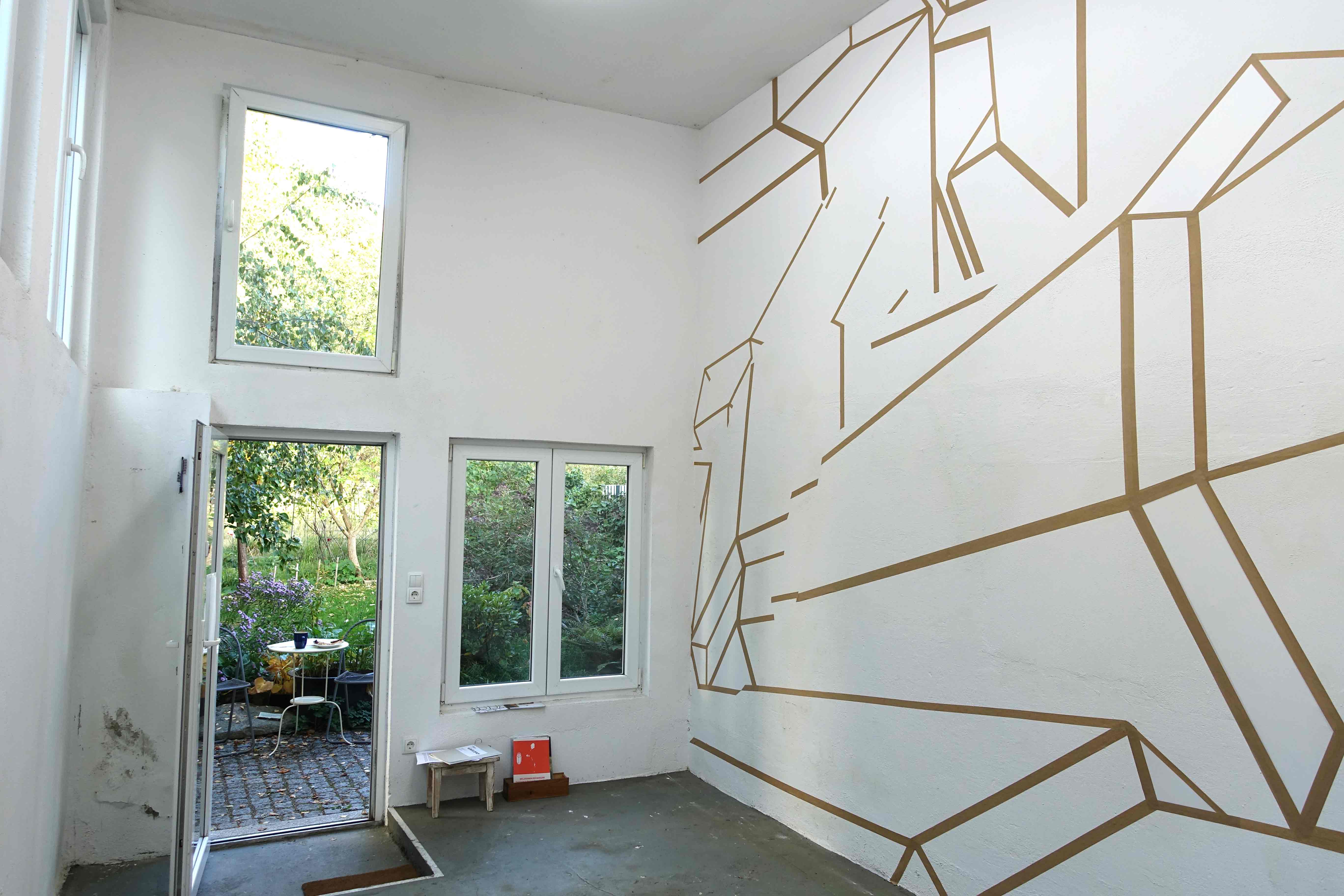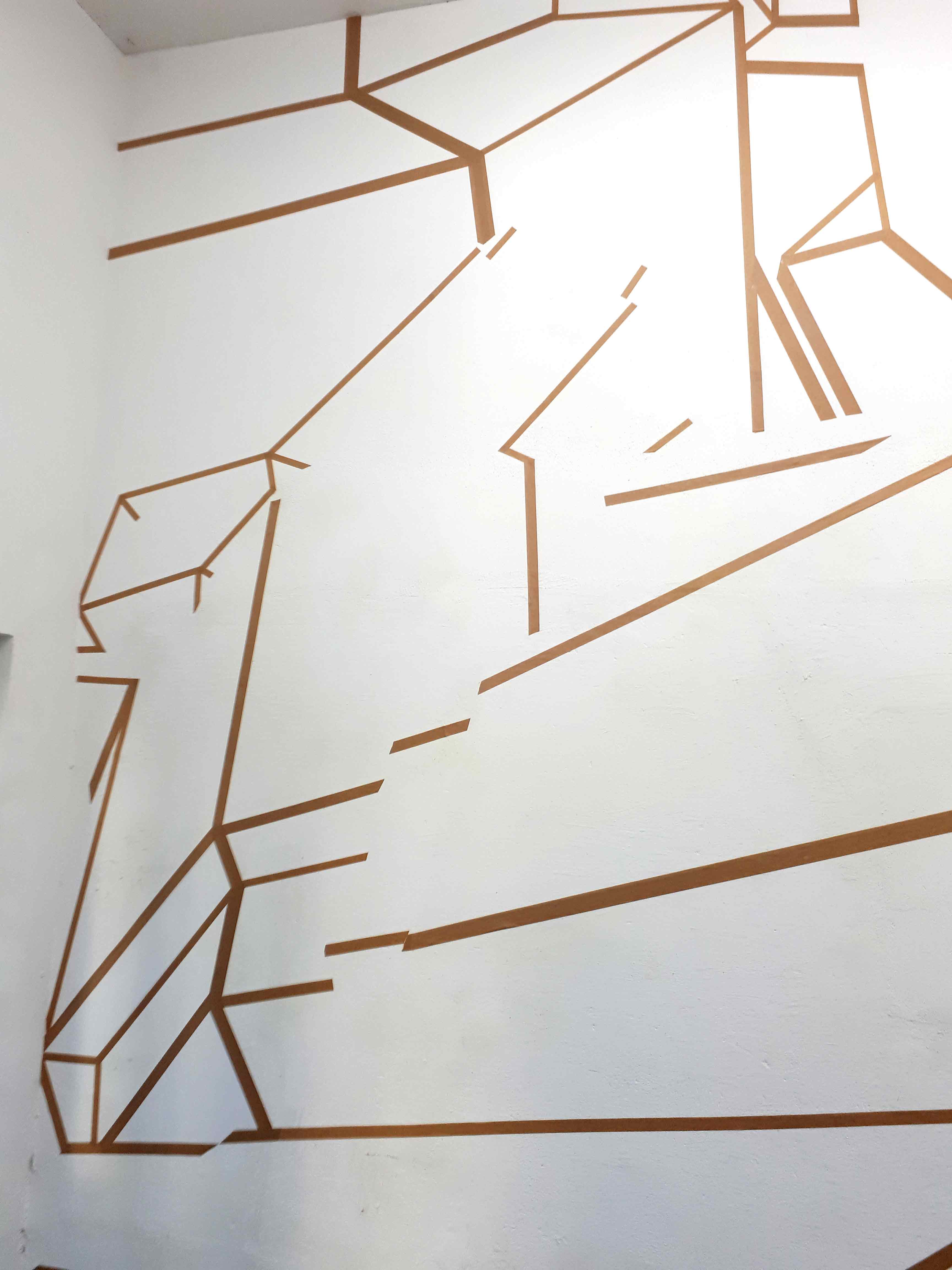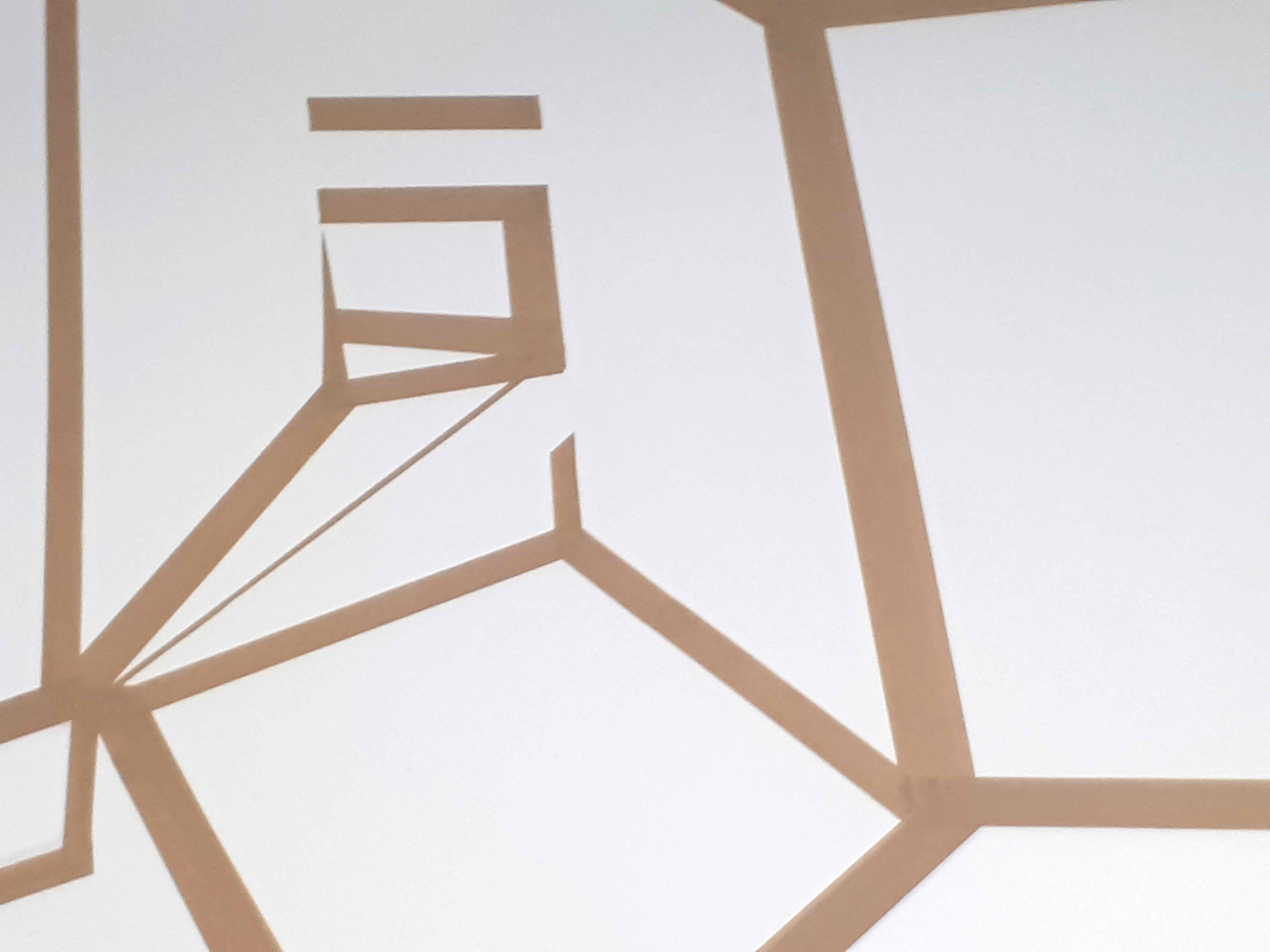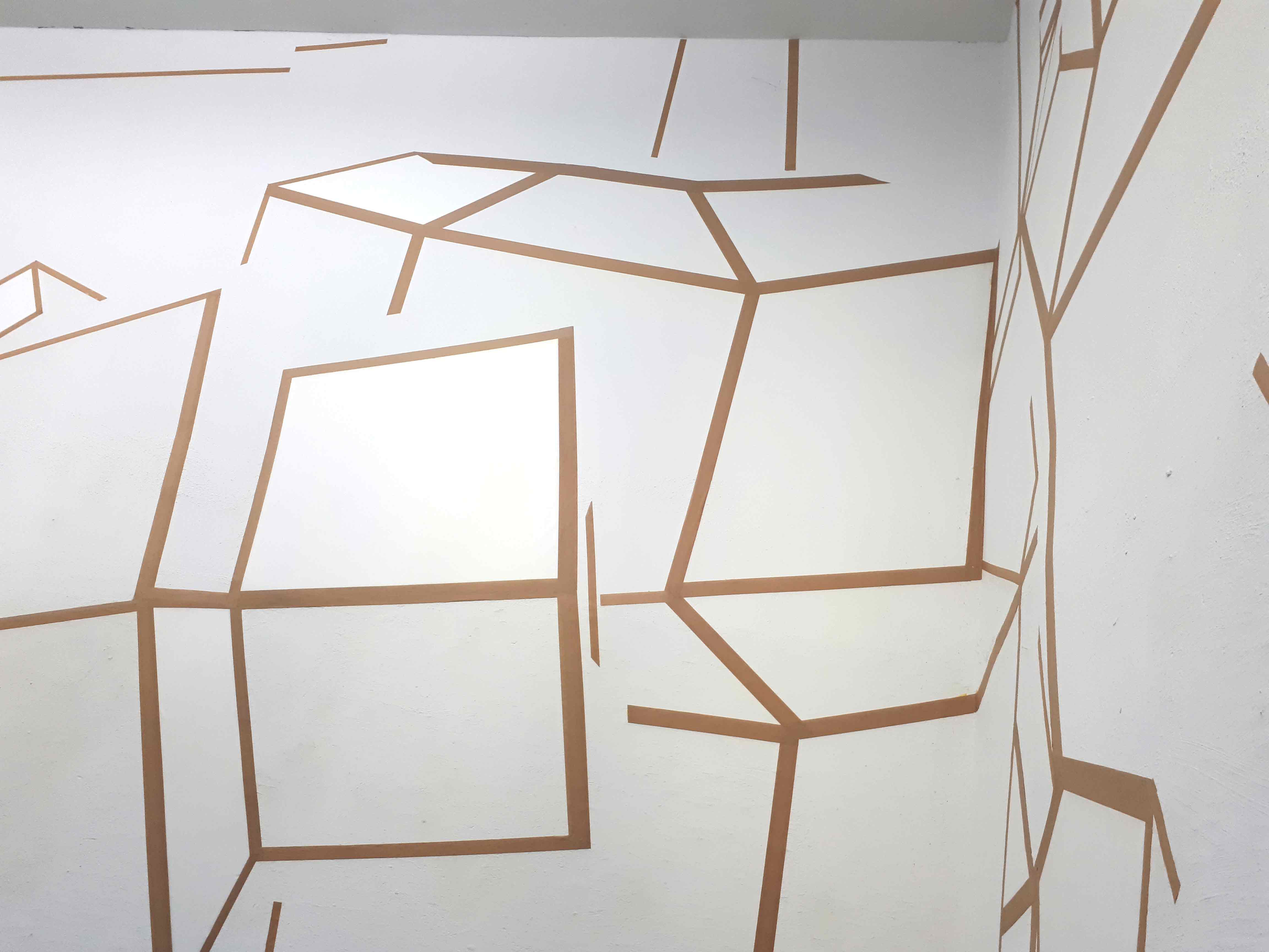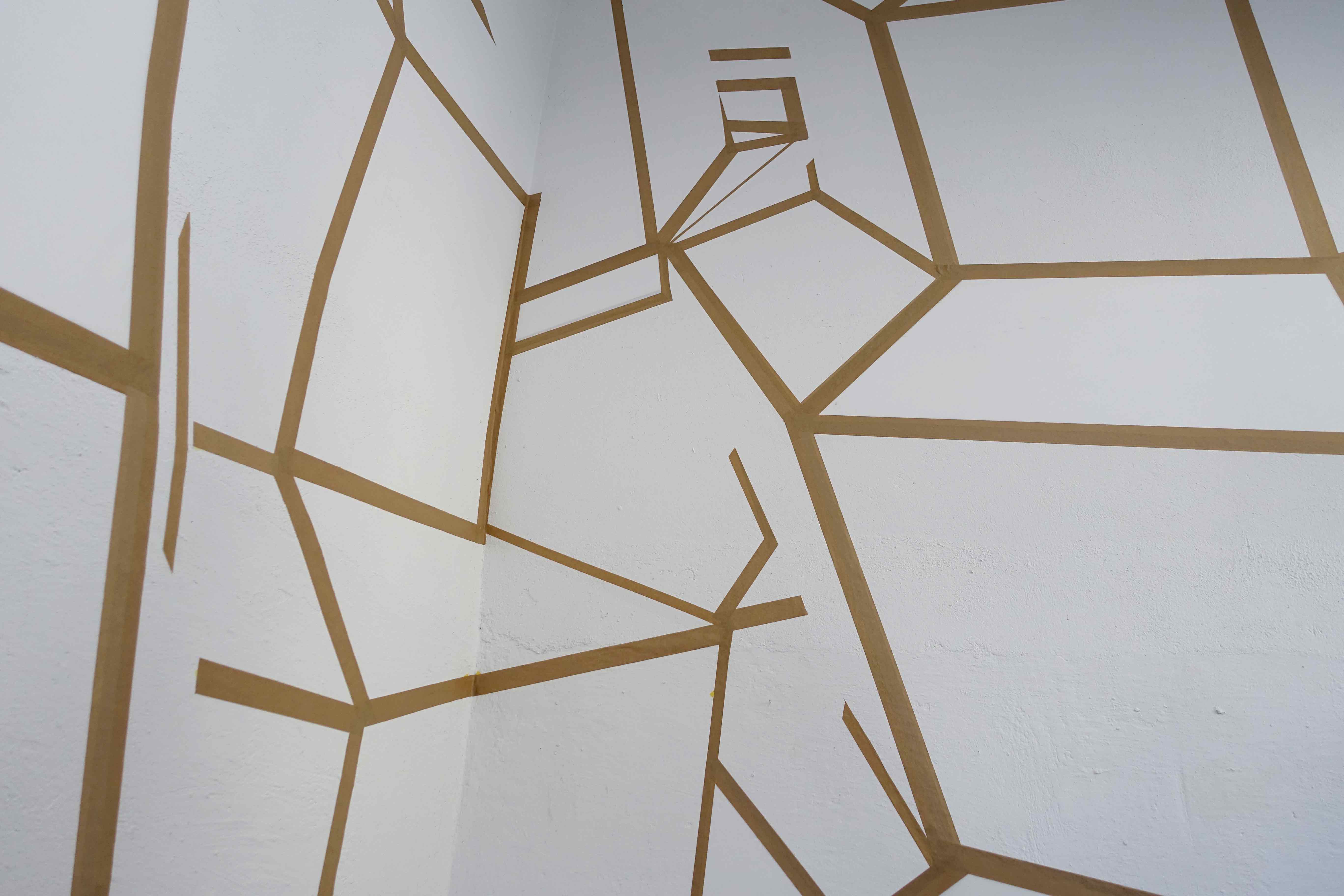 Im Piranesi Experiment wird der hohe, schmale Raum durch Collagieren und Zeichnen umgewandelt. Über den Wänden liegt ein Raster, das angelehnt an die Körperlichkeit einer plastischen und gestuften Achteckform neue Richtungen und Ebenen, Durchgänge und Tiefen suggeriert und zugleich abstrakt bleibt. Es entstehen rätselhafte Eindrücke über den eigenen Aufenthaltsort. Einige der durch das Raster gebildeten Flächen sind mit Papier bespannt – eine eher spür- als sichtbare Irritation der Illusionsebene und eine Gewichtung der Zeichnung als materialgebunden. Der Mensch steht klein inmitten dieser Winkel und Stege, vergleichbar mit den winzigen Personen in Piranesis Carceri.